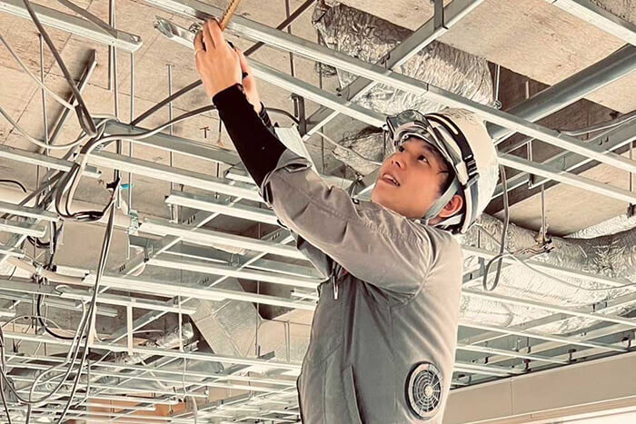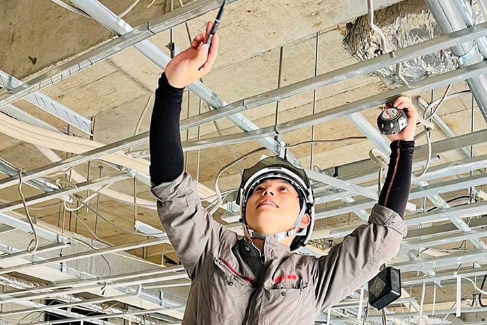 そして、杉電工事株式会社に入社し、誰もが知る施設における弱電の配管・配線をメインに行っていました。さらに、米軍基地での弱電・強電工事においても最後まで携わり、貴重な経験を重ねてきています。